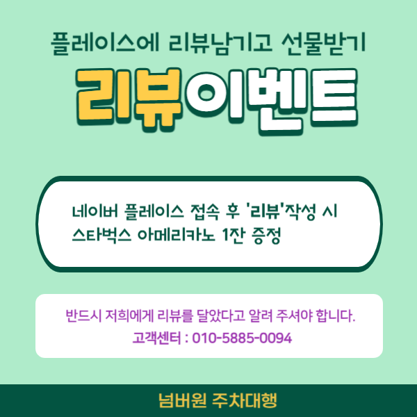 • 주차+세차 원스톱 서비스 (전화문의: 010-5885-0094)